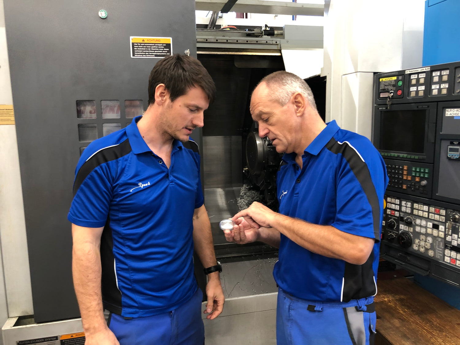 The "HSPIN" yoyos have been made in Switzerland since the first Handquake prototype in 1997. We believe in long-term relationships with our manufacturers as this allows us to grow with them from good to great, and it inspires innovation mutually. For example, we were the first to launch a bimetallic yoyo with weight rings in 1998, which was a supplier innovation. Gold-plating the PYRO as well as our unique foam packaging are the brain children of our CNC partners. Florian and Paul (photo) have been crafting our yoyos since 2007.